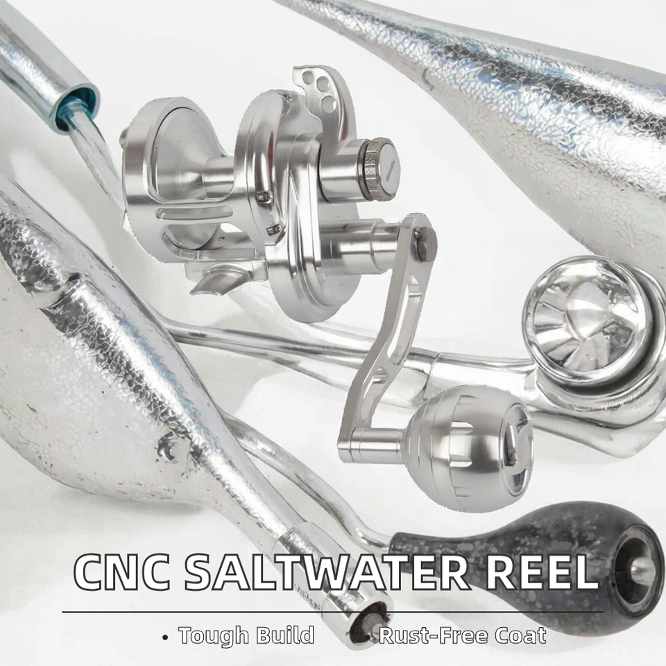 CNC Machined Aluminum Saltwater Trolling Reel 100-500 Series 25-30kg Max Drag Slow Pitch Jigging Fishing Reel for Bait Casting