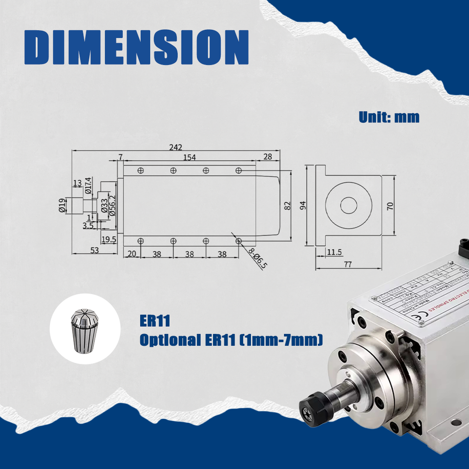 มอเตอร์แกะสลักแกนหมุน1.5KW 400Hz 24000รอบต่อนาทีแกนหมุนมอเตอร์หล่อเย็น CNC เราเตอร์ ER11อากาศ