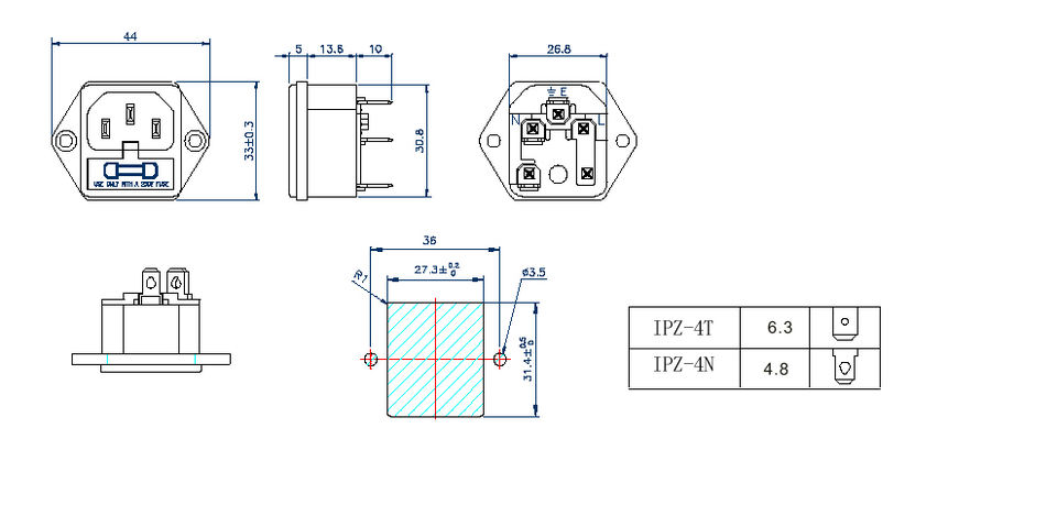 เต้ารับไฟฟ้า AC รุ่น CNLEDA IPZ-104T ซีรีส์ 220VAC 10A พร้อมฝาครอบป้องกันฟิวส์ เต้ารับไฟฟ้า AC 3 ขา พร้อมฝาครอบป้องกัน