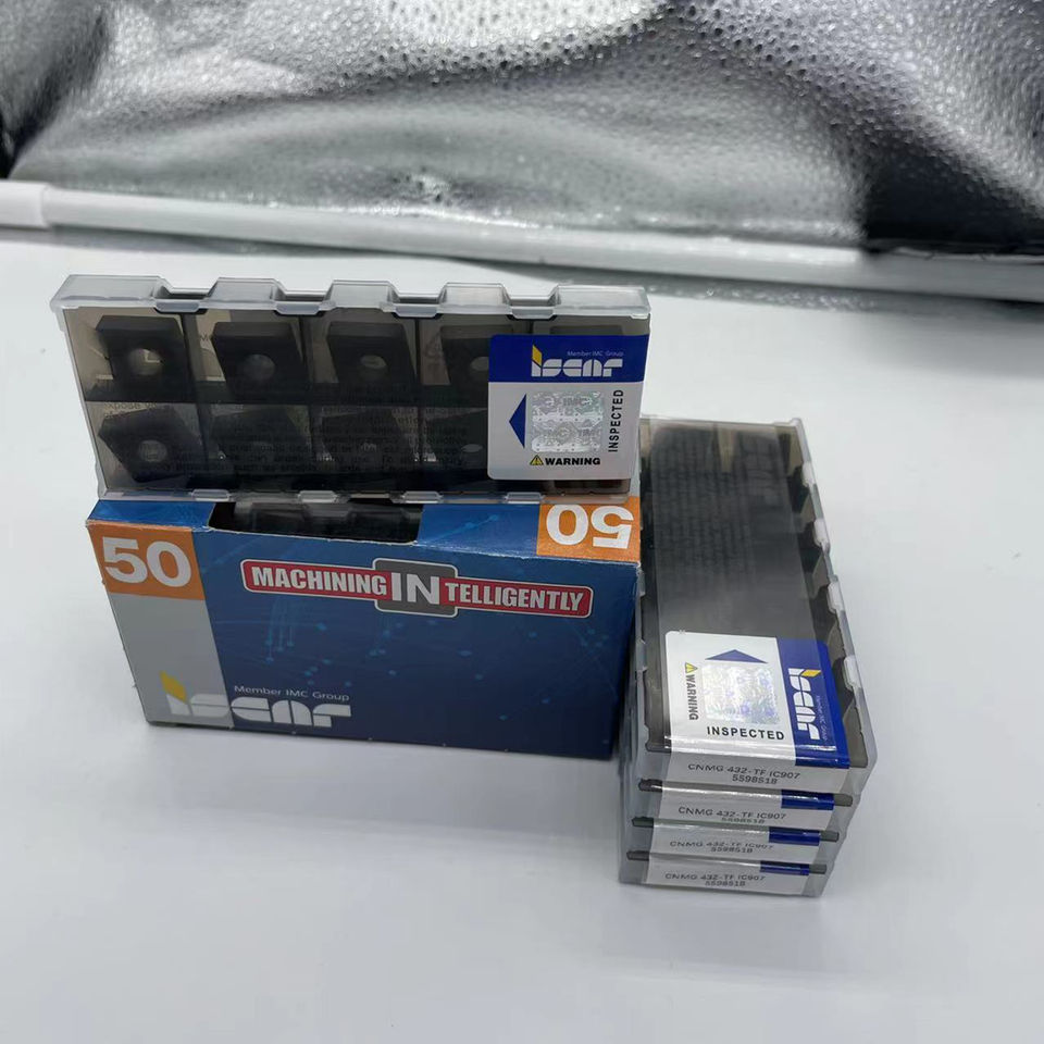 เม็ดมีดคาร์ไบด์ CNMG120408-TF IC907 ISCAR สำหรับเครื่องกลึง CNC อะไหล่เครื่องมือกลึงภายนอก ผลิตตามแบบ OEM เคลือบ PCD/PCBN แข็งพิเศษ มีสินค้าในสต็อก 100%