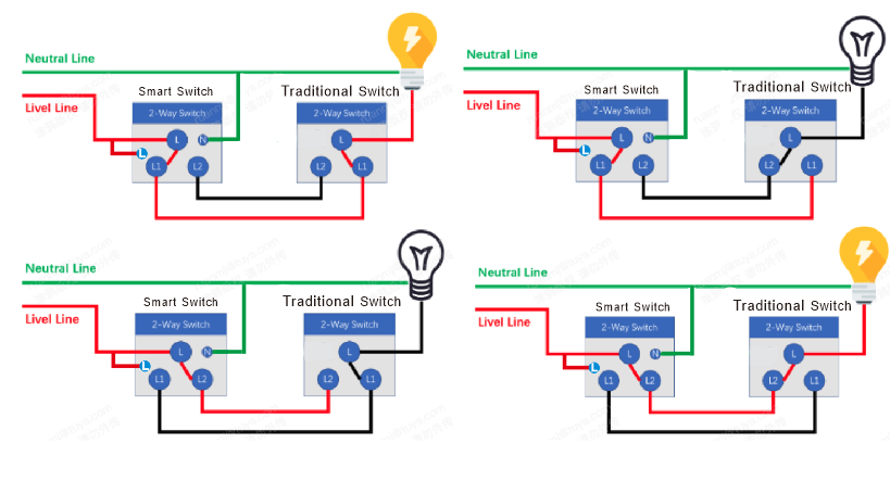 Cnskou us/au 2แก๊ง2Way รีโมทคอนโทรลไร้สายแน่นอน Alexa interruptor inteligente Tuya โคมไฟติดผนัง Wifi สวิทช์สัมผัส
