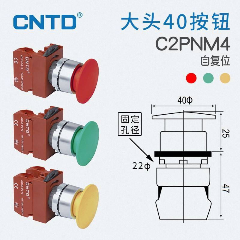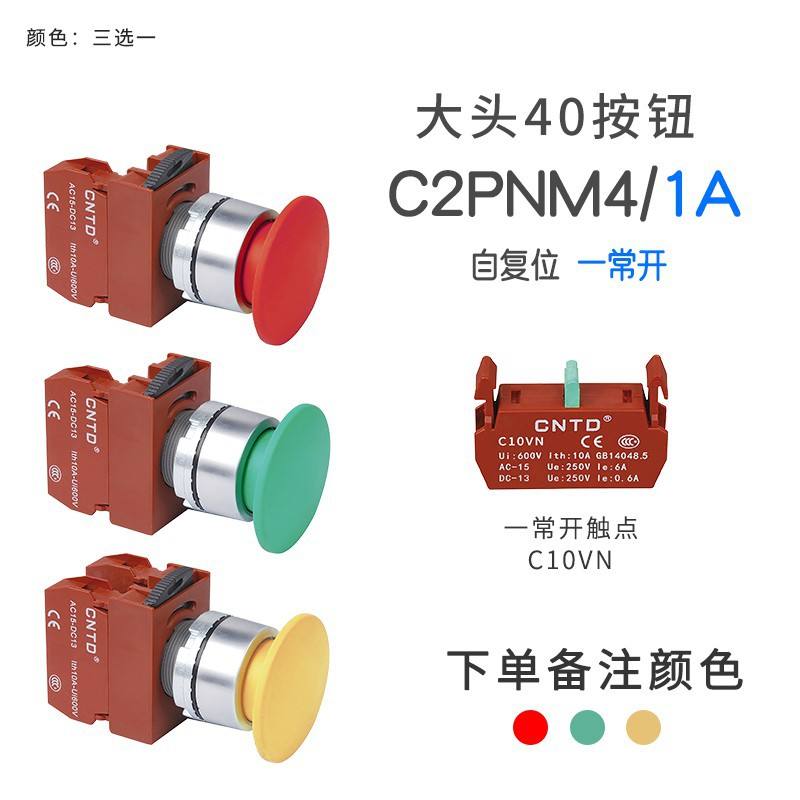 สวิตช์กดแบบรีเซ็ตอัตโนมัติ CNTD Changde C2PNM4 ขนาดหัว 40 มม. ระดับการป้องกันน้ำและฝุ่น IP65 วัสดุโลหะและพลาสติก กระแสไฟสูงสุด 10A การควบคุมกระแสไฟฟ้า