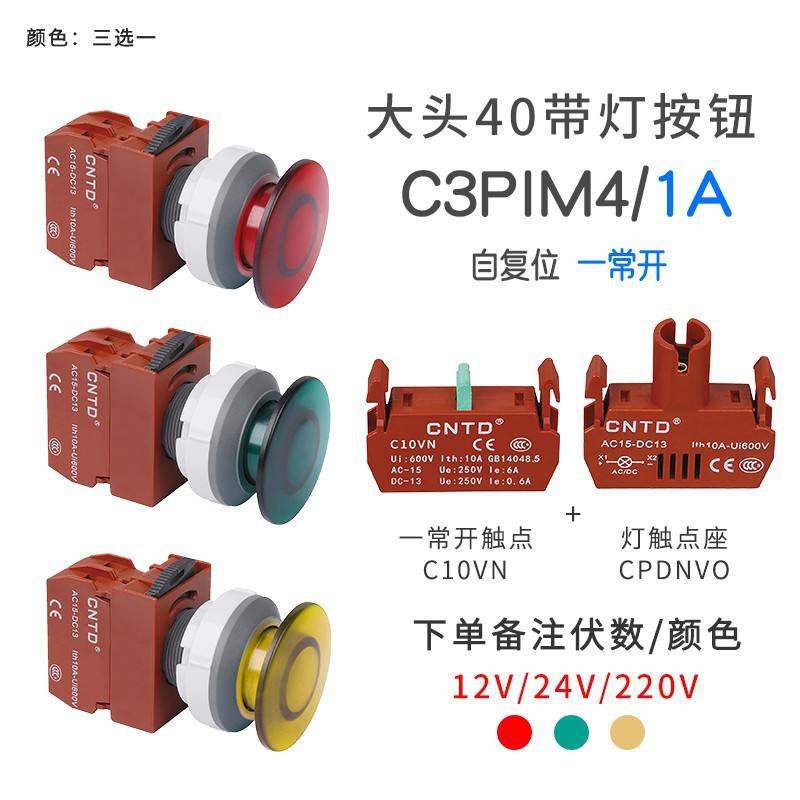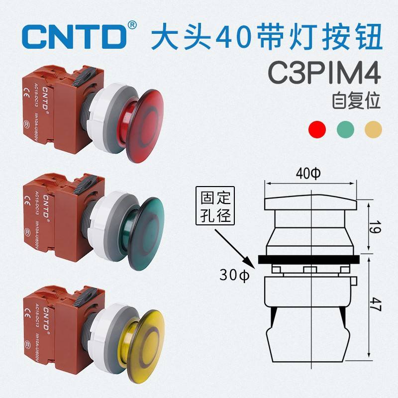 สวิตช์ปุ่มกดแบบมีไฟ CNTD Changde C3PIM4 ขนาดหัว 40 มม. ขนาดรีเซ็ต 30 มม. ปุ่มกดแบบมีไฟ ติดตั้งแบบเปิด ขนาดรูยึด 12 มม. 16 มม. 19 มม.