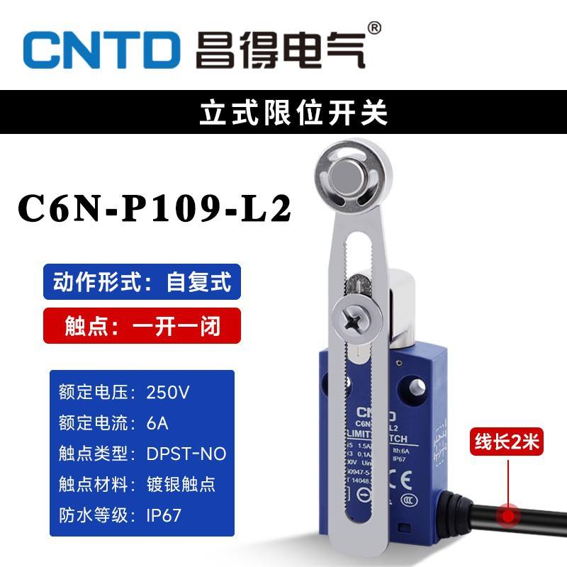 สวิตช์จำกัดระยะกันน้ำแบบรีเซ็ตตัวเอง CNTD Changde C6N-P109L2 ความยาวสายเคเบิล 2 เมตร