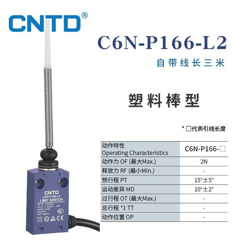 สวิตช์จำกัดระยะกันน้ำแบบรีเซ็ตตัวเอง CNTD Changde C6N-P166L2 ความยาวสายเคเบิล 2 เมตร