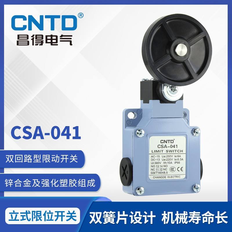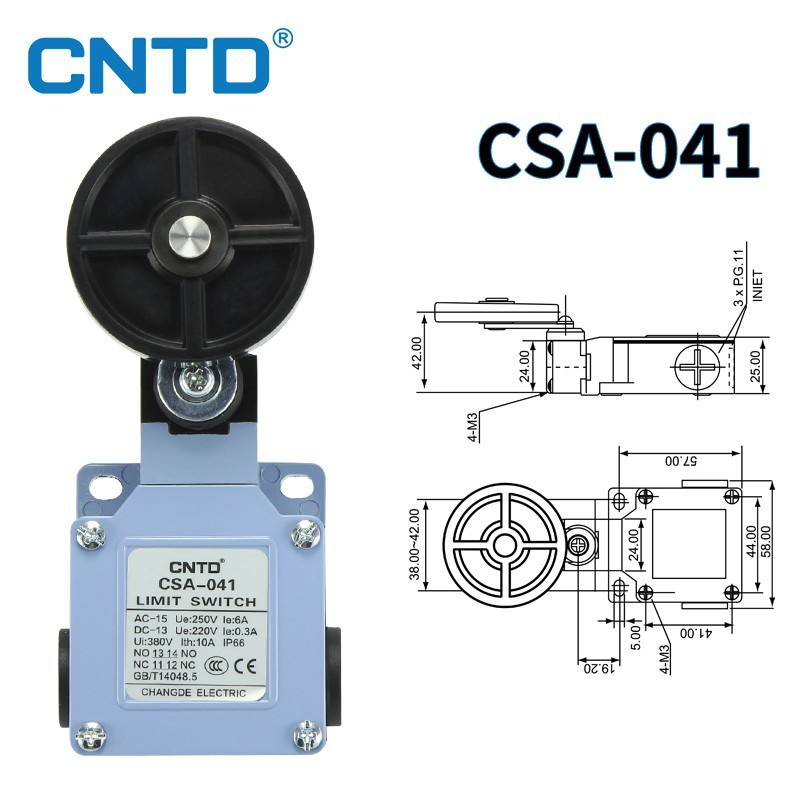 สวิตช์จำกัดระยะไฟฟ้าขนาดเล็ก CNTD Changde CSA-041 แบบกันน้ำและกันน้ำมัน พร้อมลูกกลิ้ง กระแสไฟ 10A