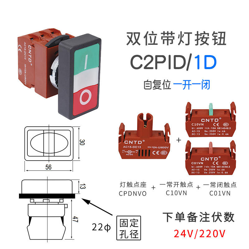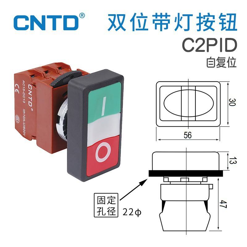 สวิตช์กดแบบมีไฟแสดงสถานะสองตำแหน่ง CNTD Changde รุ่น C2PID เปิด/ปิด 1 ช่อง 22 โวลต์