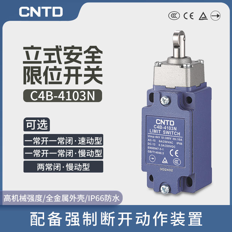 ไมโครลิมิตสวิตช์ CNTD Changde รุ่น C4B-4103N และ C4B-4172N พร้อมปุ่มกดโลหะ กระแสไฟสูงสุด 10A