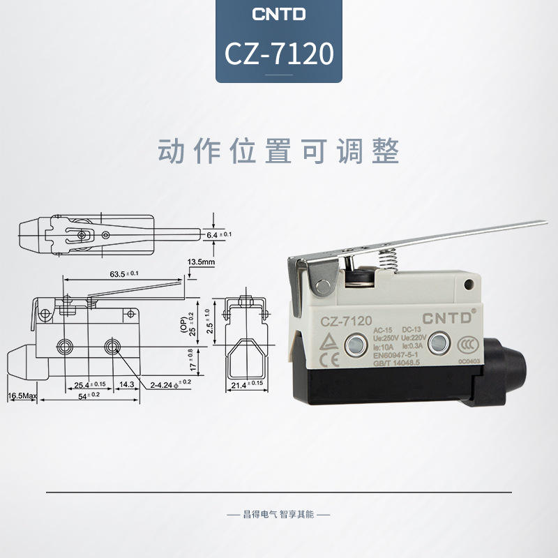 สวิตช์ไมโครไฟฟ้า CNTD Changde รุ่น CZ-7120 กันน้ำ แบบรีเซ็ตตัวเอง พร้อมด้ามจับยาว วงจร SPDT ทำจากพลาสติก