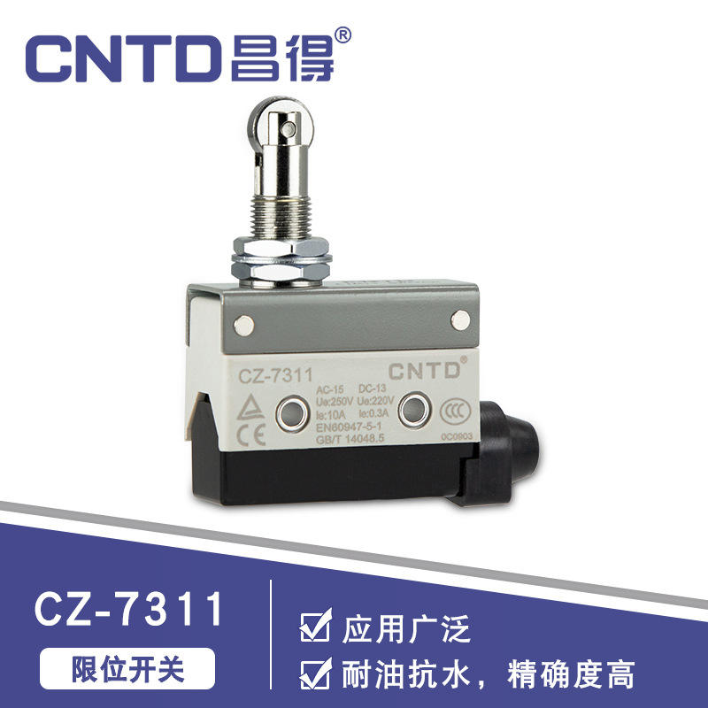 ไมโครสวิตช์ไฟฟ้า CNTD Changde รุ่น CZ-7311 แบบกดติดปล่อยดับ ตัวเรือนทรงกระบอกตรง พร้อมลูกกลิ้ง สำหรับเครื่องจักรงานไม้