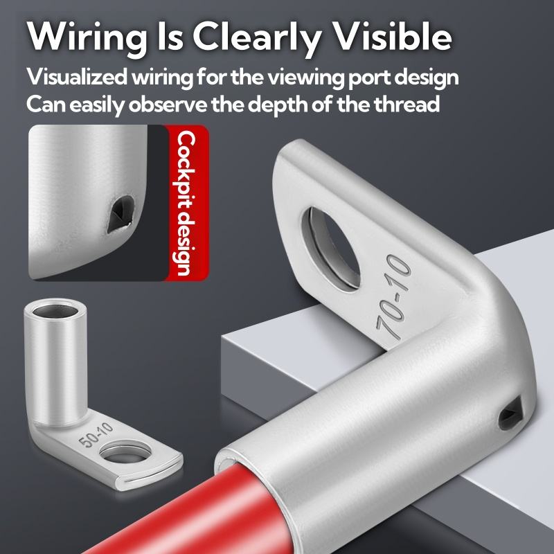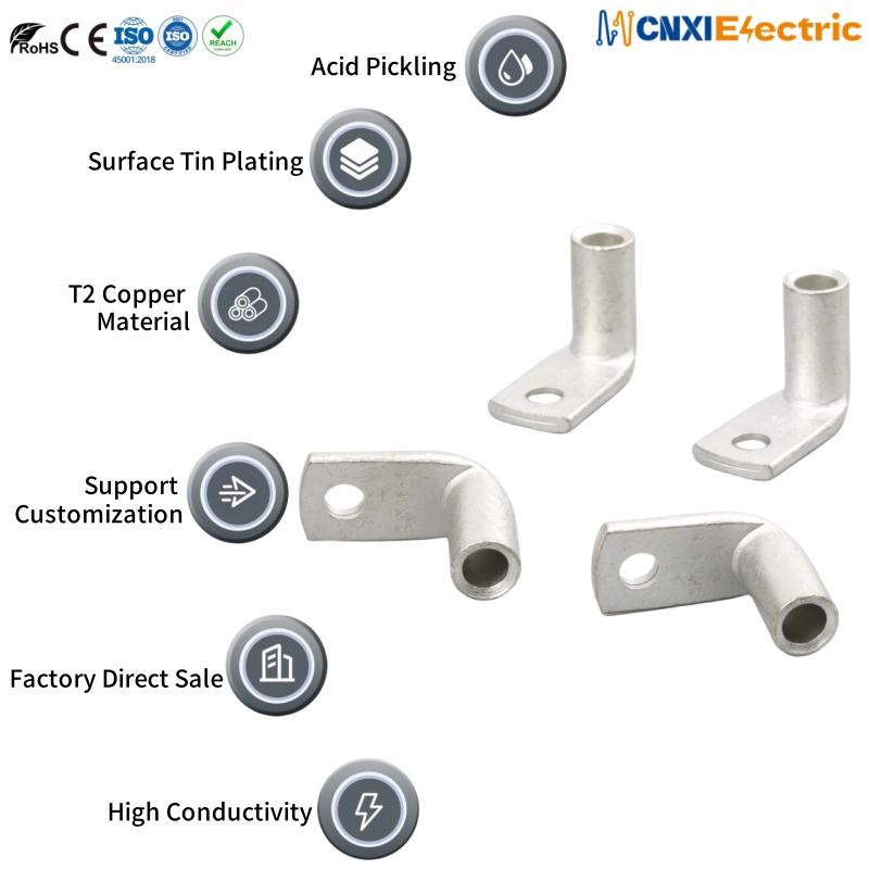 Cnxi สายเคเบิลทองแดง T2มุมฉากสิ้นสุดหลายขนาดขั้วต่อแบบจีบสำหรับงานหนักลวดไฟฟ้าเชื่อมตาไก่วงแหวน