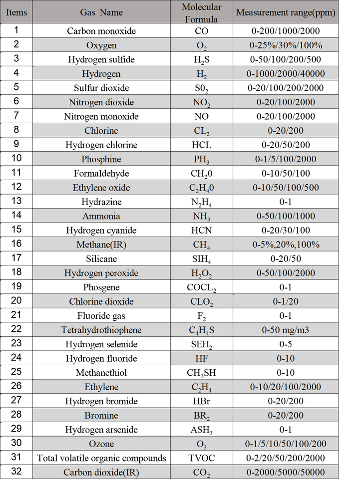 เครื่องตรวจจับก๊าซแบบพกพาสำหรับตรวจจับก๊าซ CO O2 H2S H2 NO NO2 SO2 NH3 CL2 O3 HCL PH3 HCN CO2 เครื่องวิเคราะห์ก๊าซ