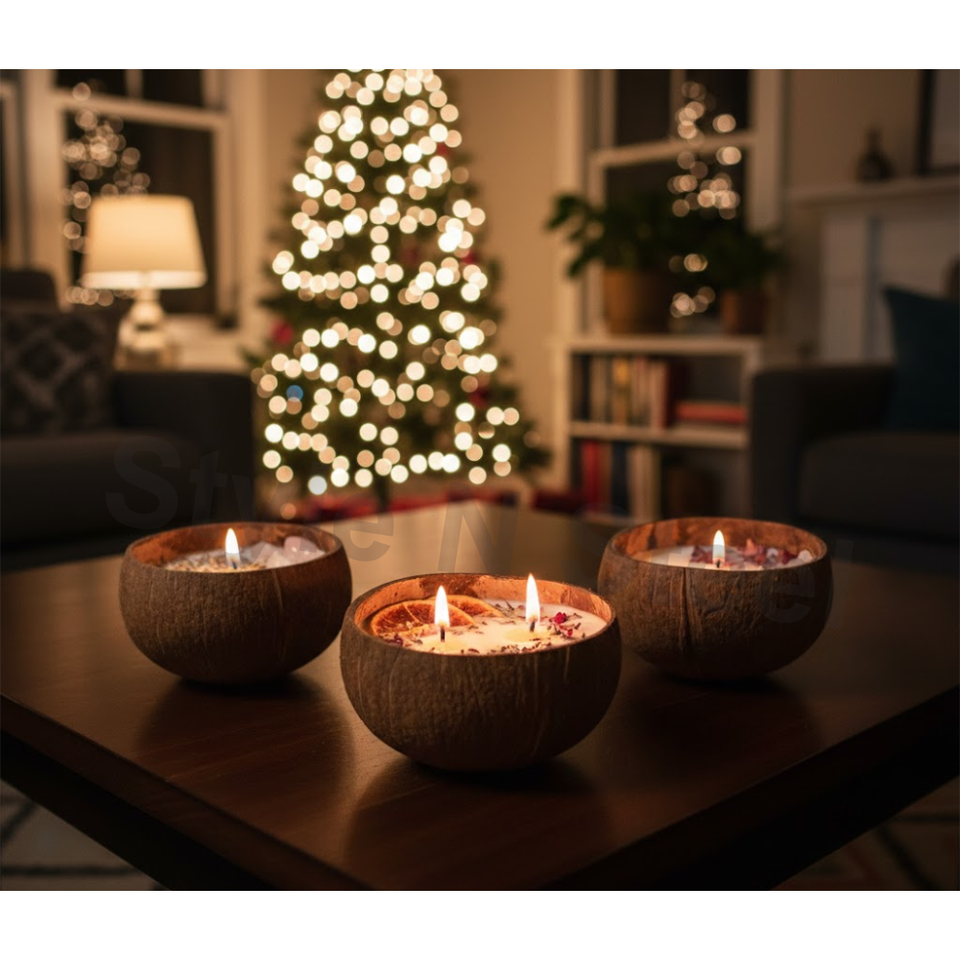 เทียนหอม COCO BOWL CANDLE ทำจากขี้ผึ้งมะพร้าวและถั่วเหลือง สำหรับทำเทียนตกแต่ง - สำหรับคริสต์มาส อีสเตอร์ วันเกิด และวันวาเลนไทน์