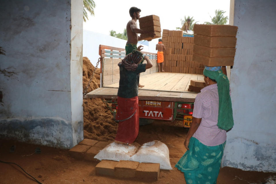 การบีบอัดรังไหมจากฝุ่นมะพร้าวเพื่อการเจริญเติบโตของพืช
