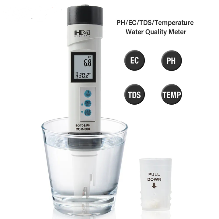เครื่องวัดค่าดิจิตอล COM-300 HM 4 in 1 สำหรับวัดค่า EC /TDS /อุณหภูมิ/ ค่า pH กันน้ำ พร้อมระบบ ATC