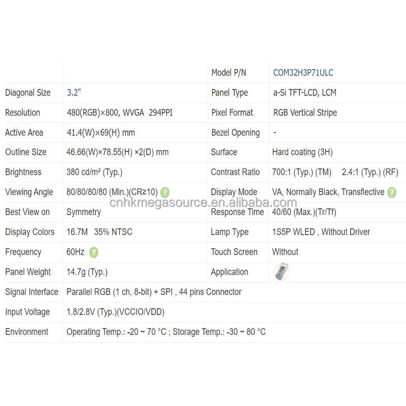 COM32H3P71ULC หน้าจอ3.2นิ้ว480*800จอแสดงผล LCD COM32H3P71ULC แผง LCD