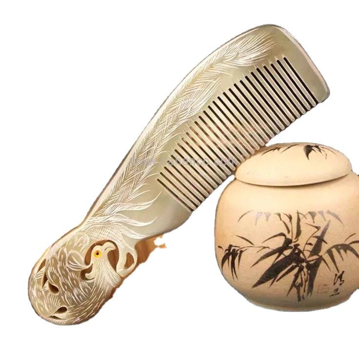 หวีทรงเขาควายหวีฮอร์นหวีป้องกันไฟฟ้าสถิตแบบธรรมชาติสำหรับเป็นของขวัญวันหยุดโดยงานฝีมือจันทร์เสี้ยว