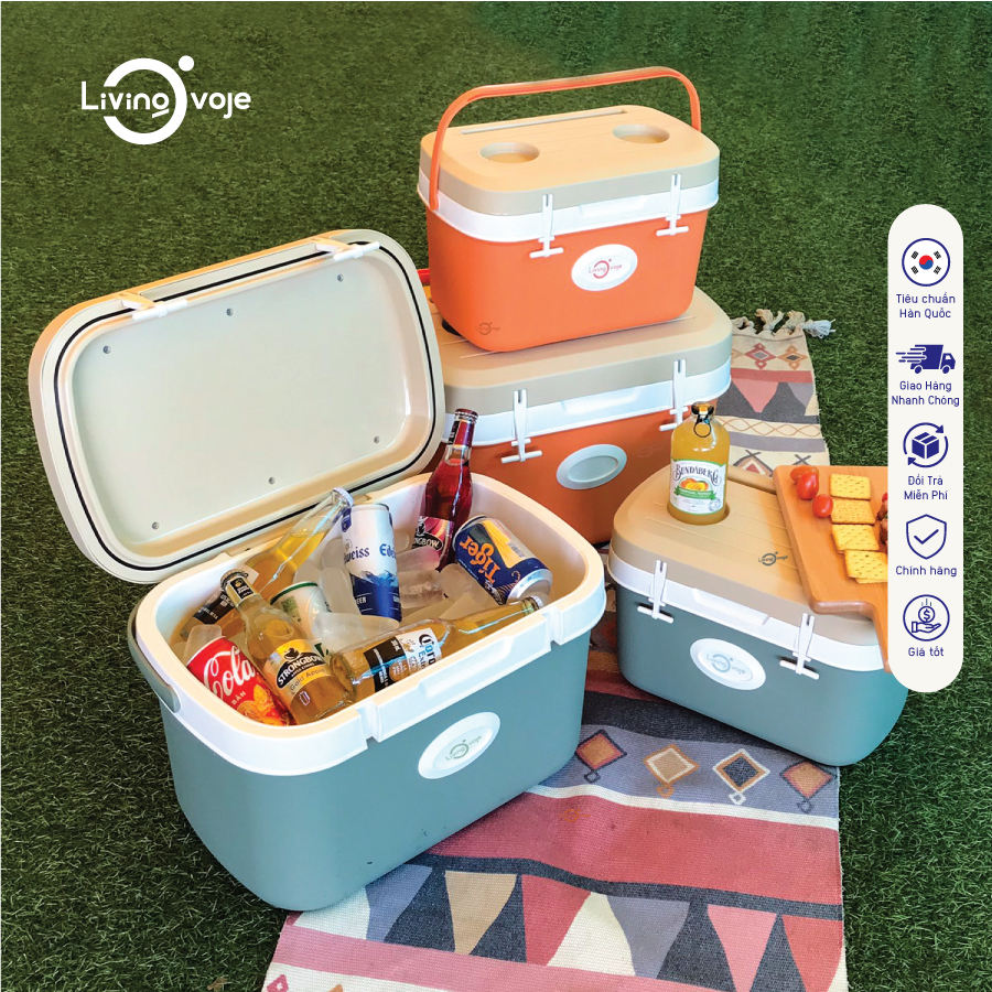 กล่องเก็บความเย็นแบบพกพา COMBO 11L-25L พร้อมโต๊ะและที่วางแก้ว สีเขียว สำหรับปิกนิกกลางแจ้ง ผลิตในเวียดนาม รับผลิตแบบ OEM/ODM พร้อมสกรีนโลโก้