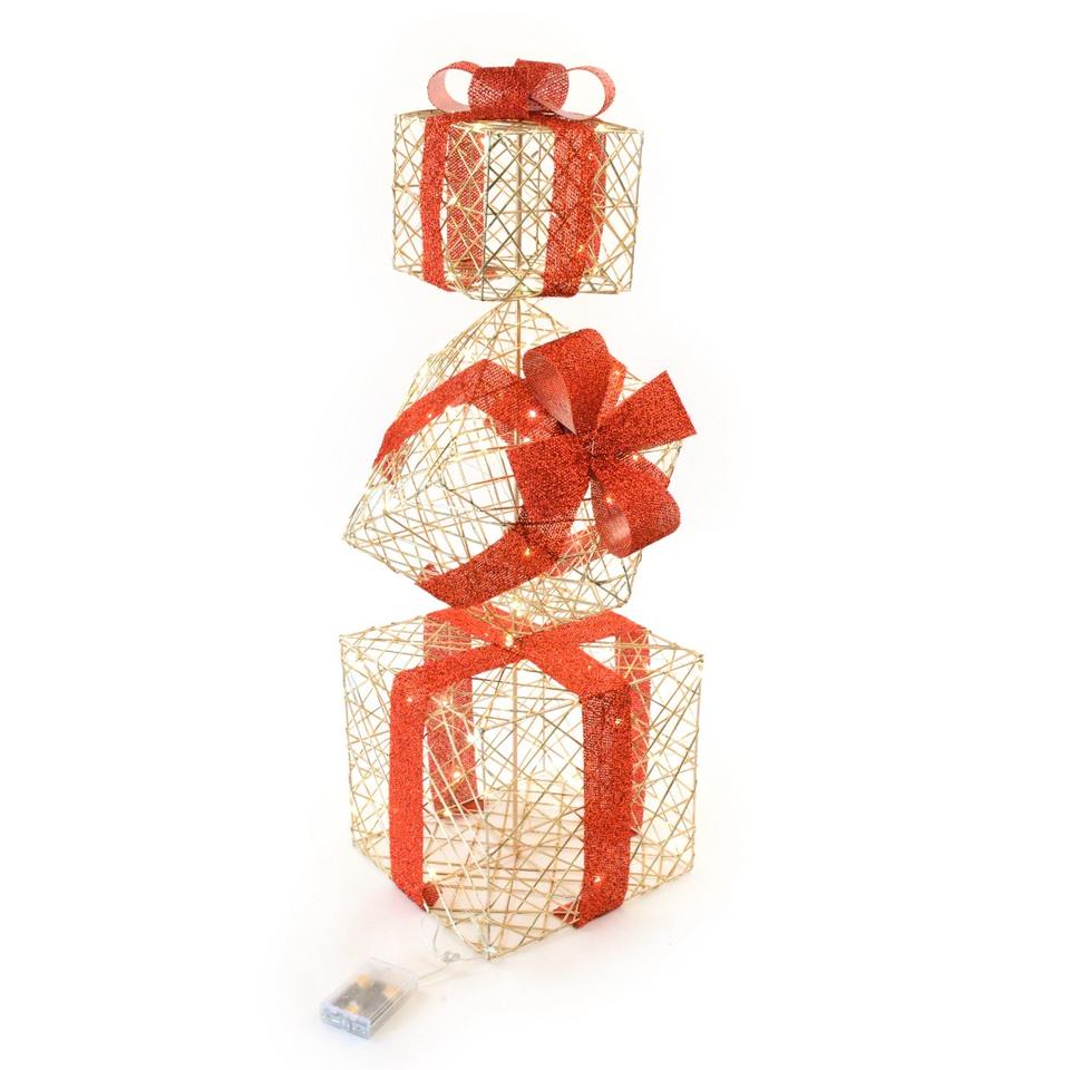 ชุดของขวัญ 3 ชิ้น บรรจุในกล่องโลหะสีทอง 90 LED แบตเตอรี่ 25x25 ซม. สูง 78 ซม.