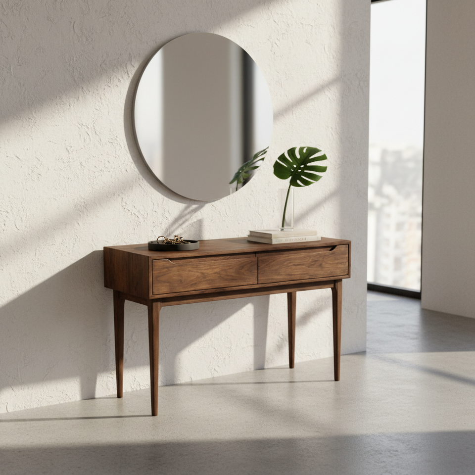 โต๊ะคอนโซล 2 ลิ้นชัก สีน้ำตาลเข้ม