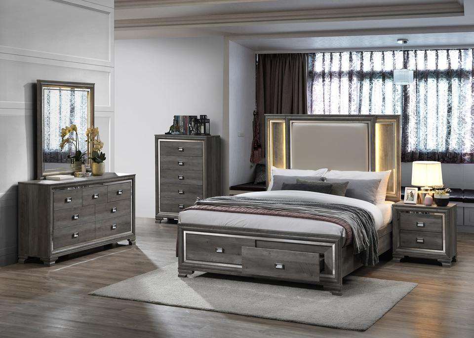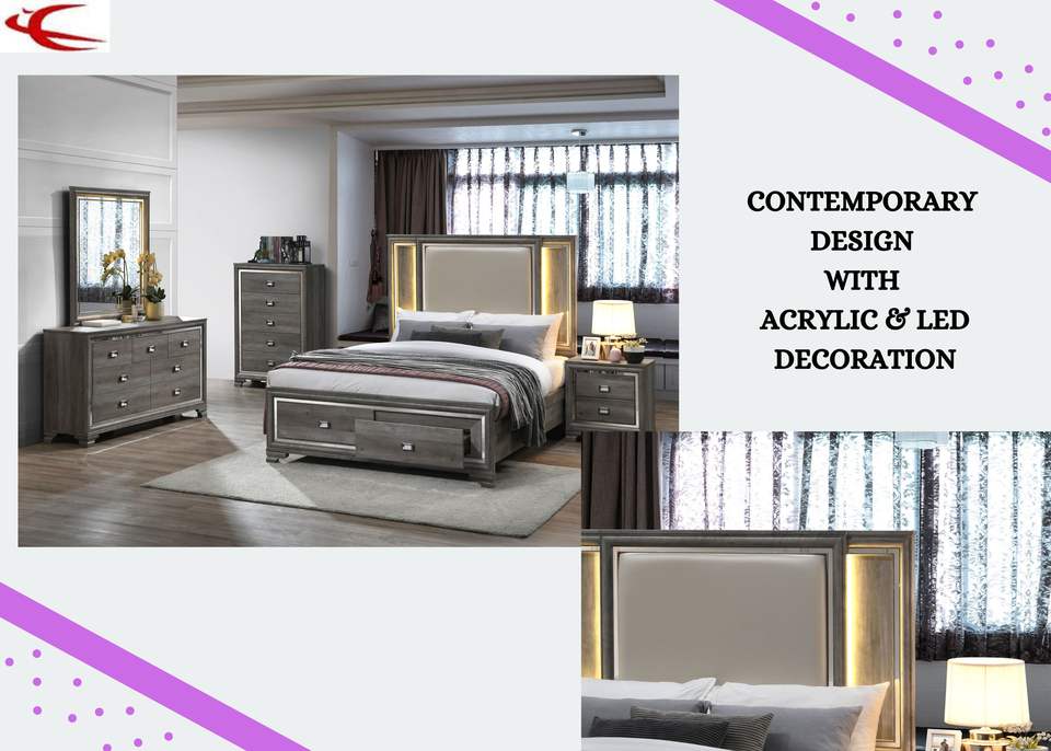 ชุดห้องนอนไม้ร่วมสมัย5ชิ้นพร้อมอะคริลิคและไฟ LED ตกแต่ง