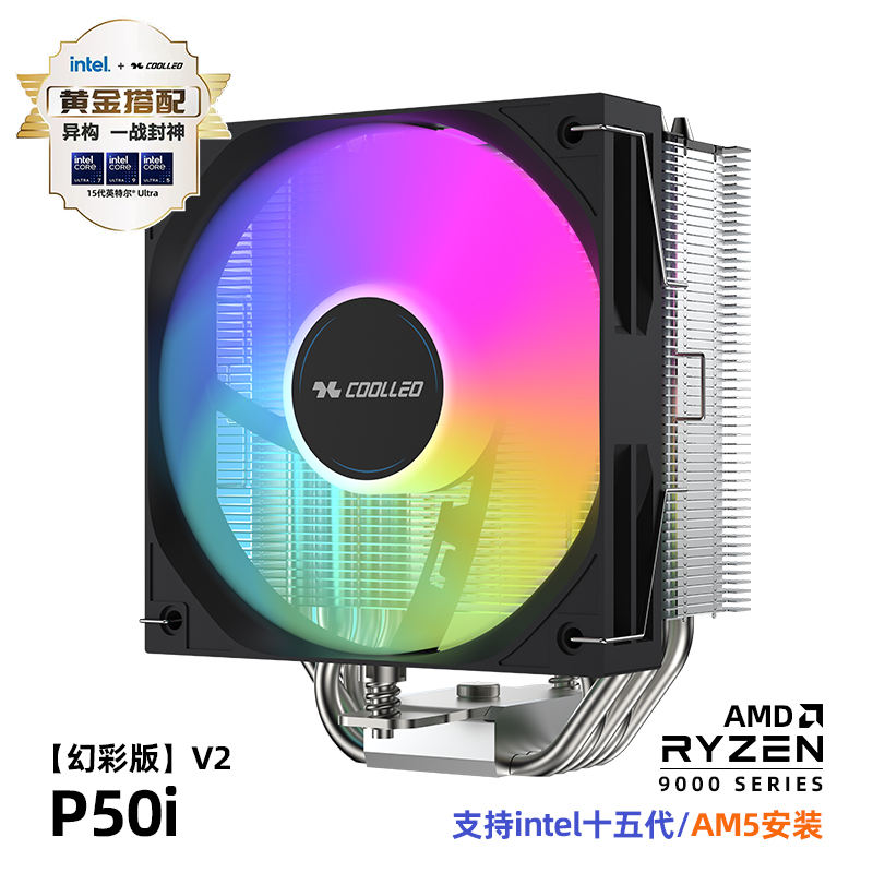 COOLLEO P50i ARGB V2 ฮีทไปป์ 5 เส้น TDP 235W ชุดระบายความร้อนซีพียูแบบลม รองรับซีพียู LGA 115X/1200/1700/1851 และ AMD Ryzen AM4/5