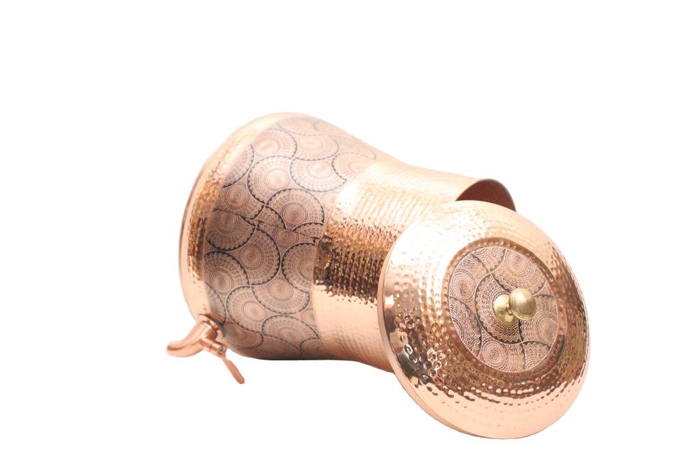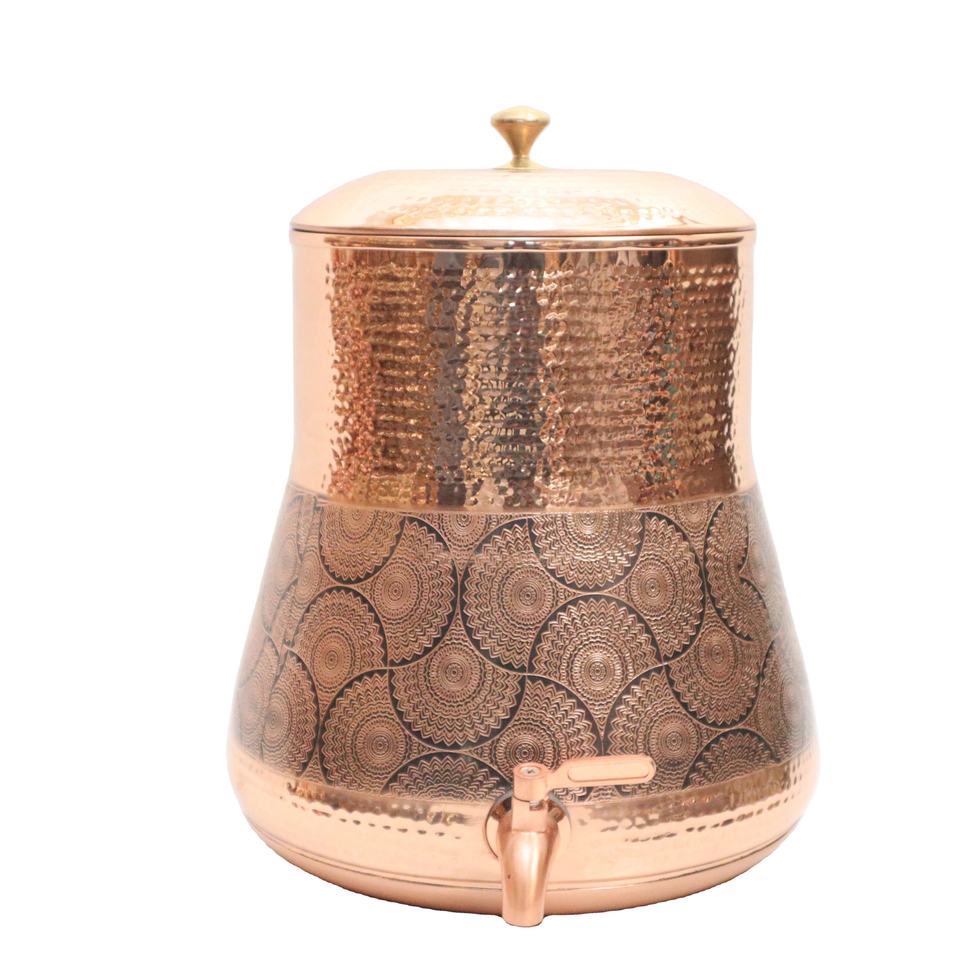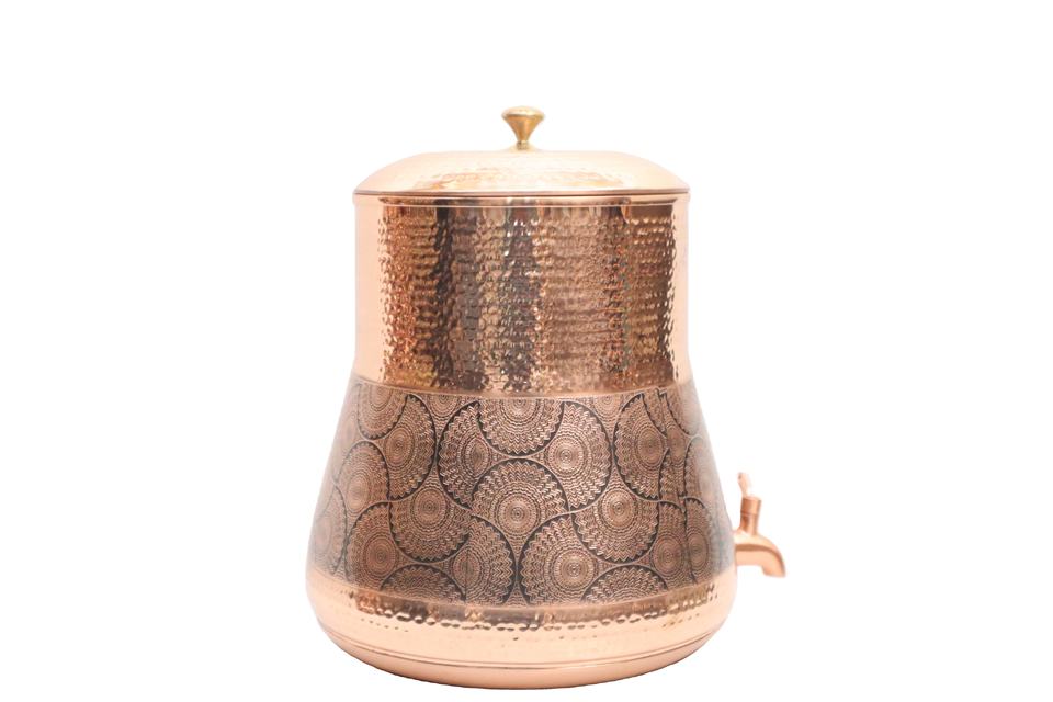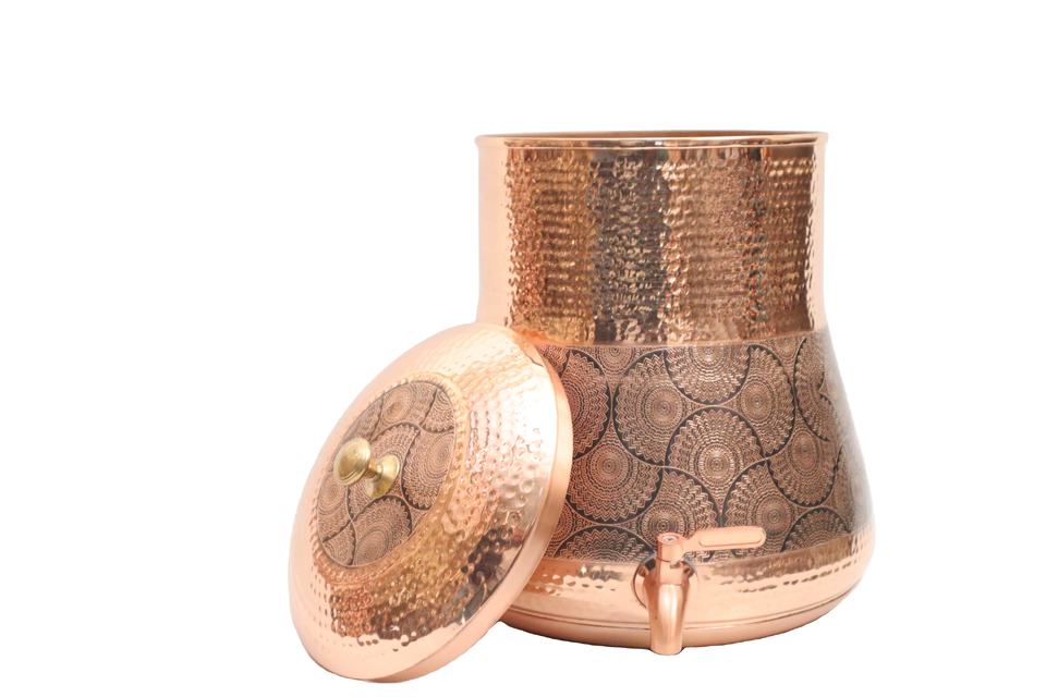 เครื่องจ่ายน้ำทองแดงแท้ 100% ทำด้วยมือ - กระถางน้ำทองแดงแบบตอกลายพร้อมก๊อกกันรั่ว สำหรับตกแต่งบ้านและโรงแรม