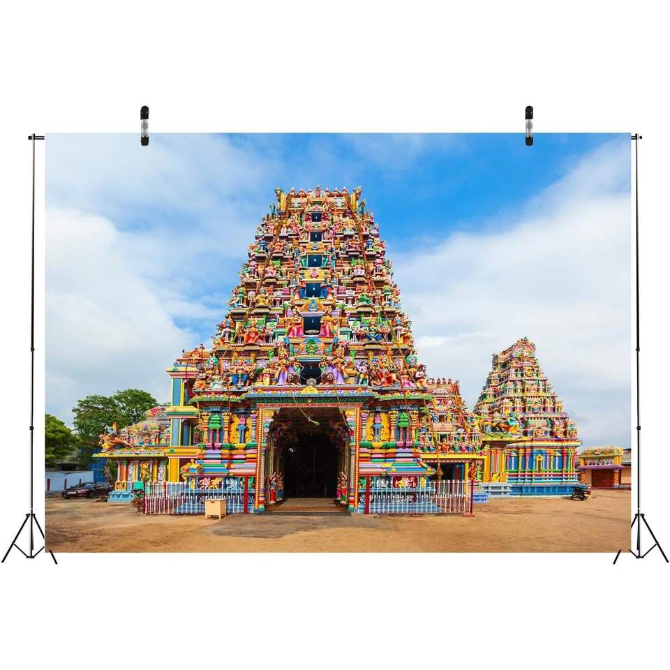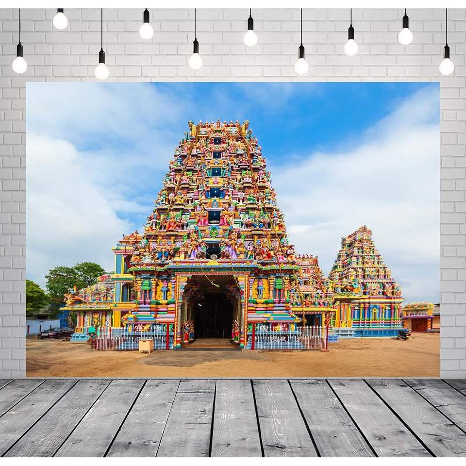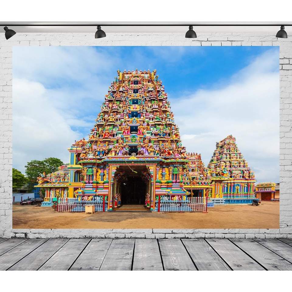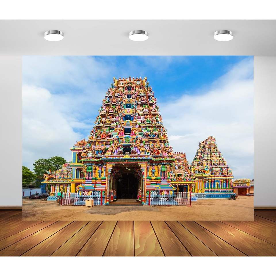 Corfoto 10x6.5ft ตกแต่งผนังฉากหลังวัดฮินดูสีสันสดใสอินเดียอาคารศาสนาอินเดีย amman วัดผู้ใหญ่
