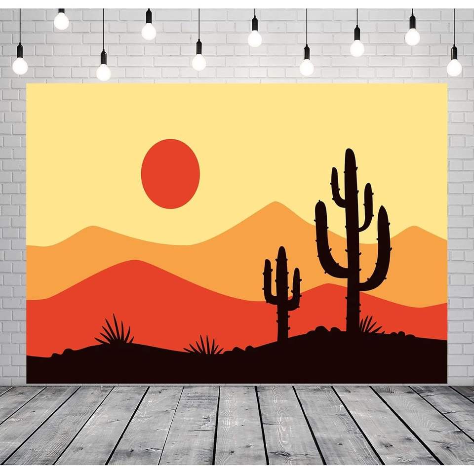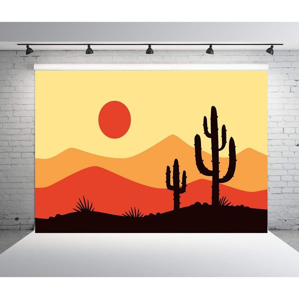 CORFOTO ของตกแต่งผนัง ขนาด 12x8 ฟุต ผ้าพิมพ์ลายการ์ตูน ฉากหลังพระอาทิตย์ตกในทะเลทราย คาวบอยตะวันตก คาวเกิร์ล กระบองเพชร ซิลลูเอท รูปภาพเหล็กดัดรีดไอน้ำ ฝักบัว