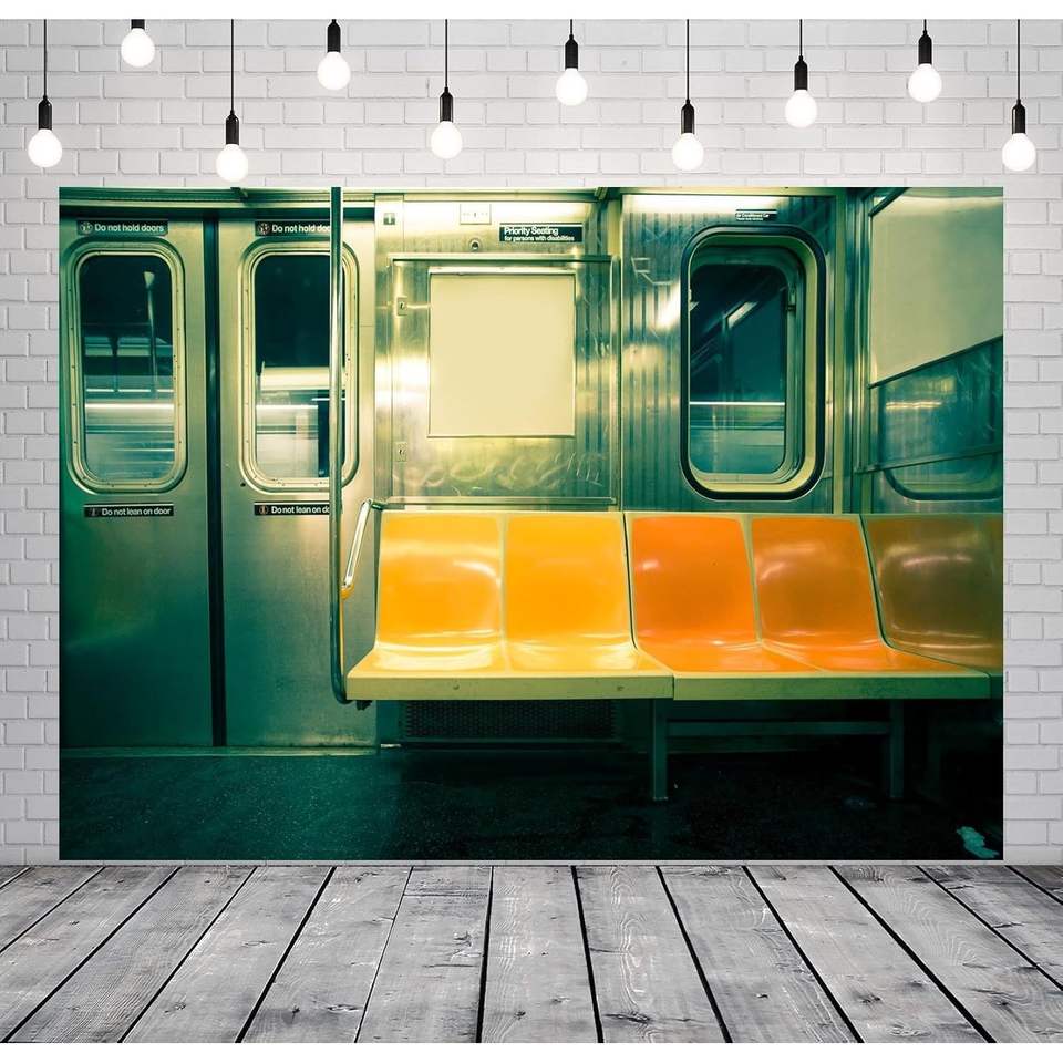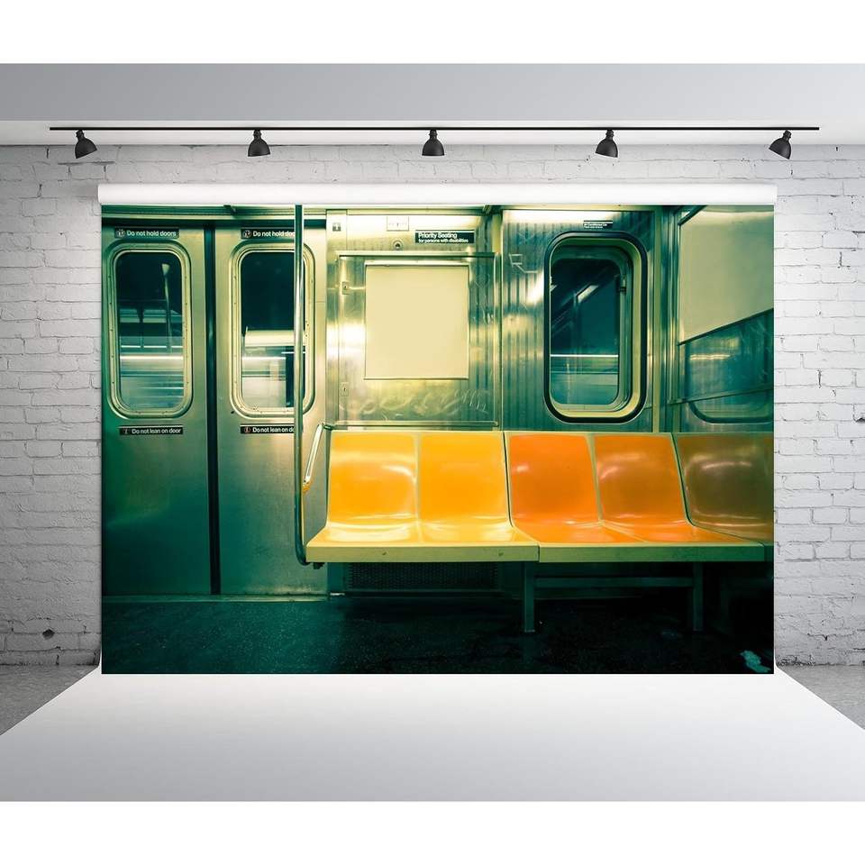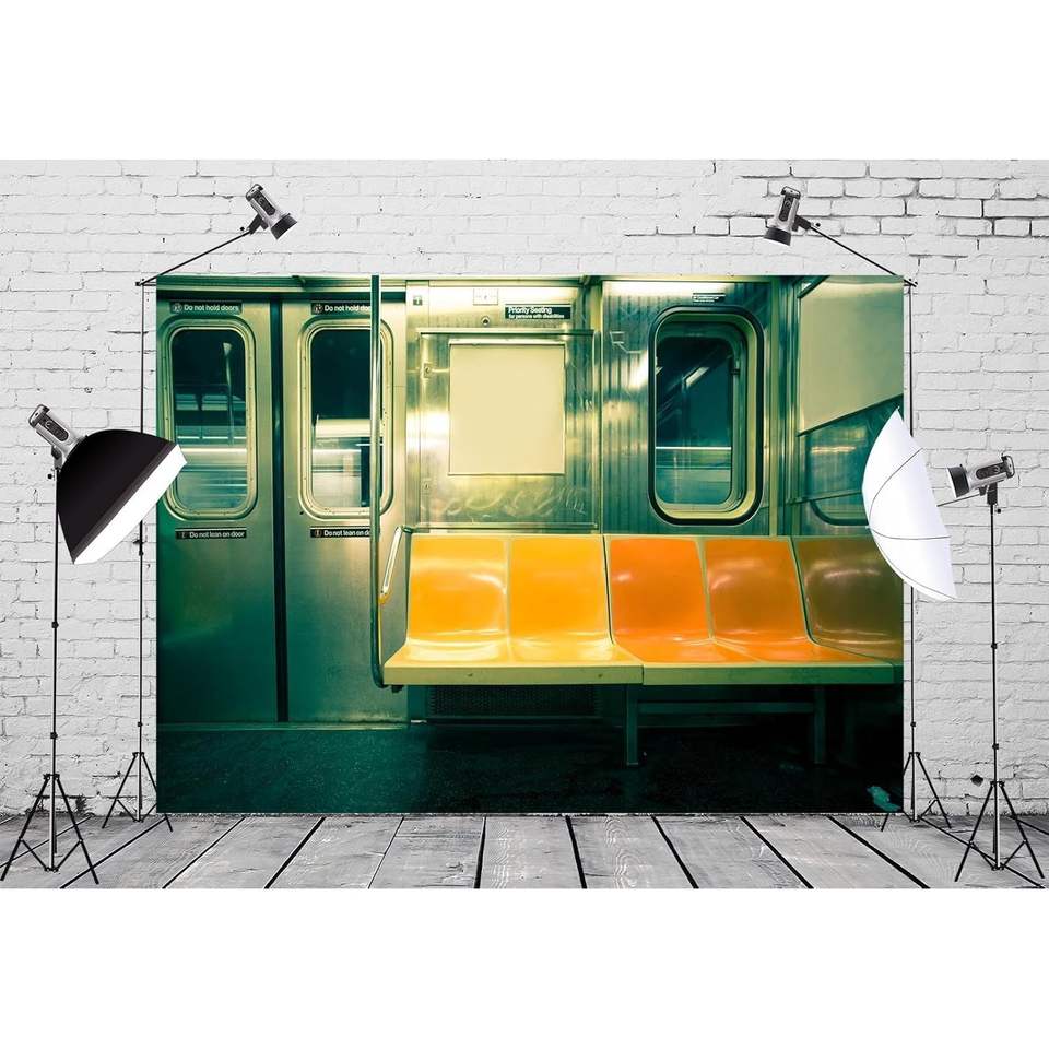ของตกแต่งผนัง CORFOTO ขนาด 7x5 ฟุต ผ้าพิมพ์ลาย 3 มิติ ฉากหลังรถไฟใต้ดินแบบมุมมองขวาง ที่นั่งสาธารณะว่างเปล่า ของตกแต่งงานวันเกิด สำหรับถ่ายรูปผู้ใหญ่
