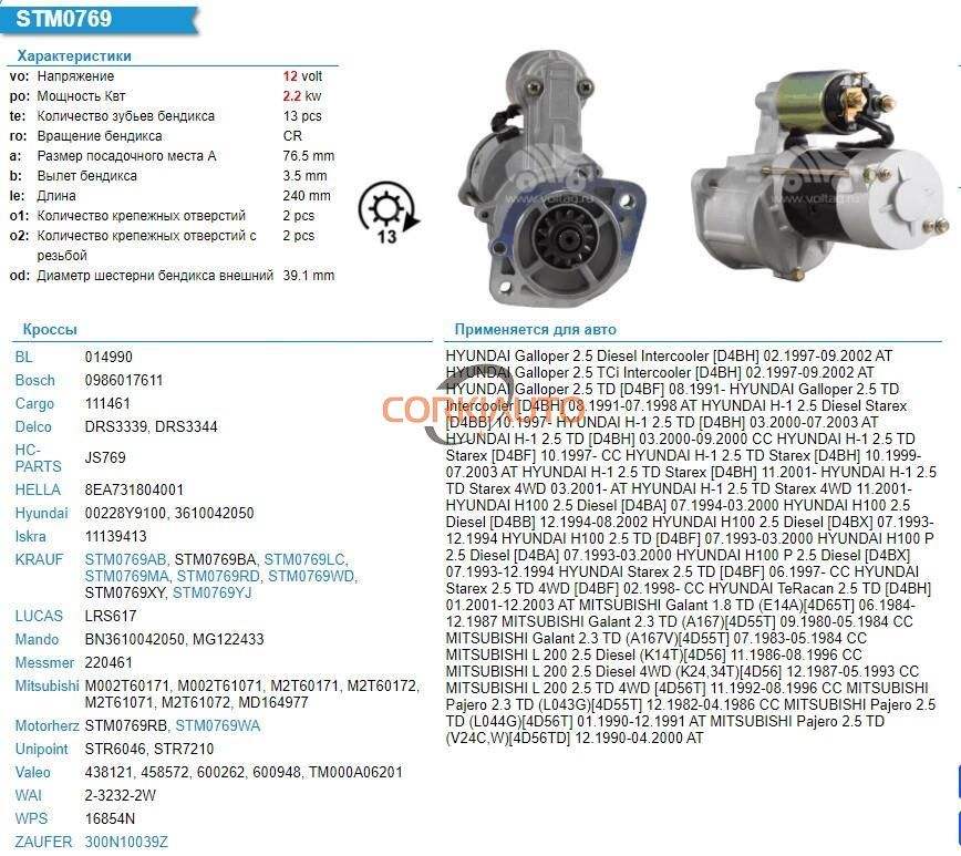 M2T60171, MD072654, M2T61071, MD164977, 36100-42050, JS769, 16854, RS20-015, STM0769