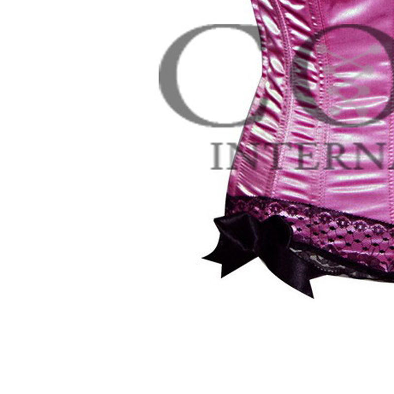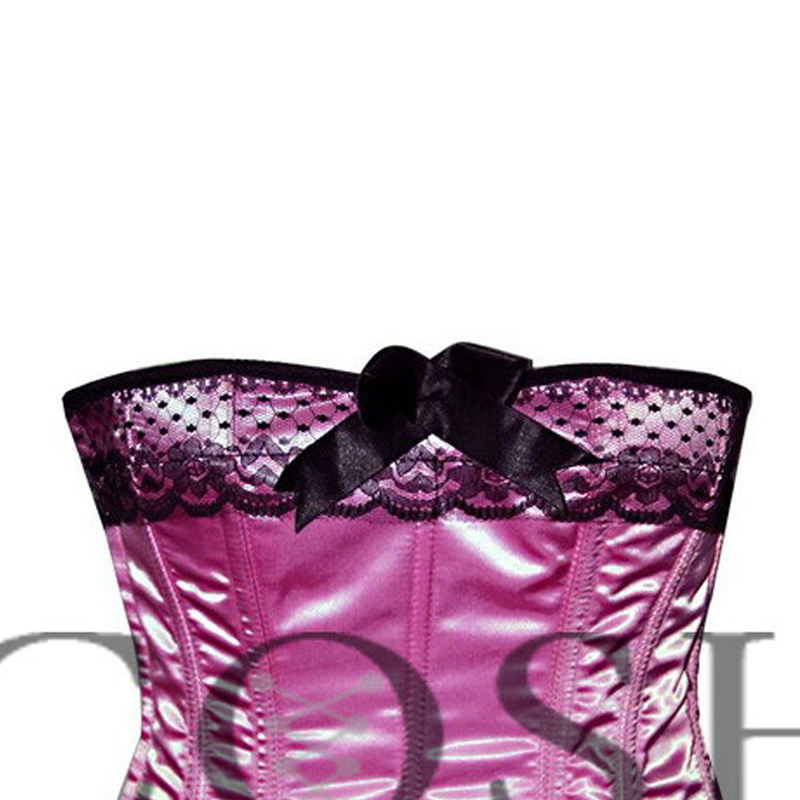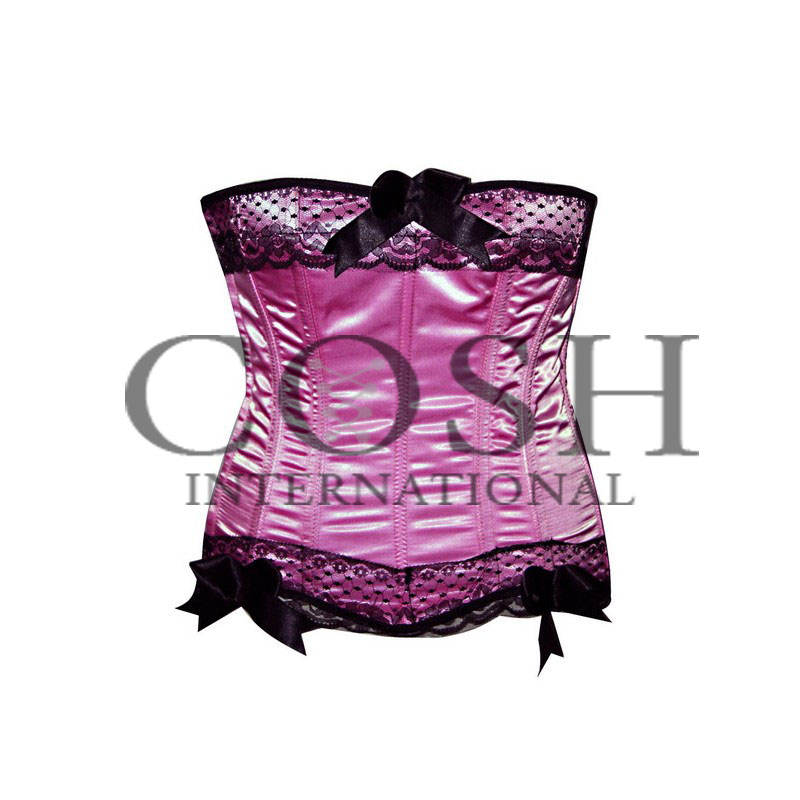 คอร์เซ็ท COSH แบบโอเวอร์บัสต์ โครงเหล็ก ระบายอากาศ ติดหมุดรัดเอว ทรงนาฬิกาทราย สีชมพูซาติน แต่งลูกไม้สีดำ