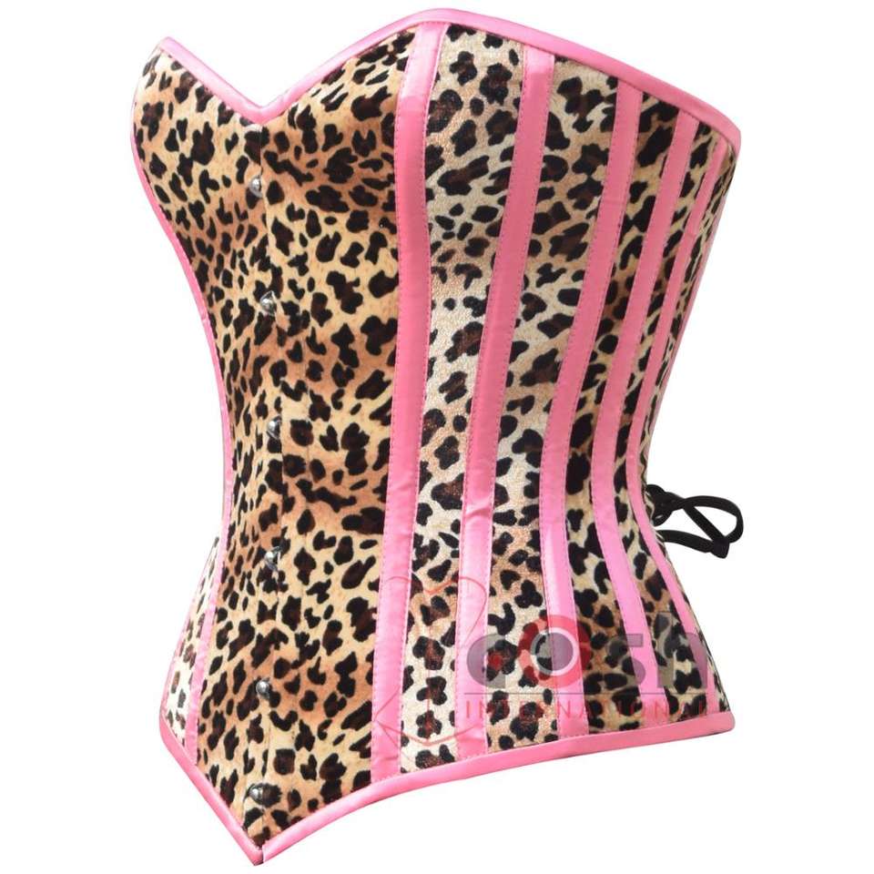 ชุดเดรสปรับขนาดได้สำหรับสวมใส่แฟชั่นชุดคอร์เซ็ทผ้าซาตินสีชมพูลายเสือดาวพิมพ์ลายเสือดาว