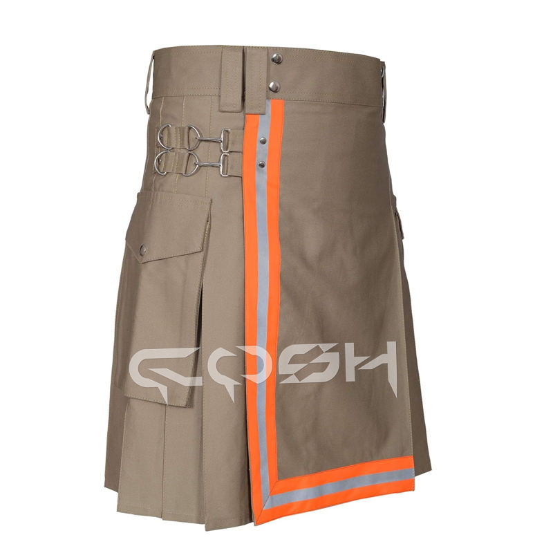 Cosh kilts กระโปรงผ้าฝ้ายสีเบจ, ผ้าฝ้ายดับเพลิงหน่วงไฟและเสริมการออกแบบยูทิลิตี้กระโปรงที่มีหลายกระเป๋า