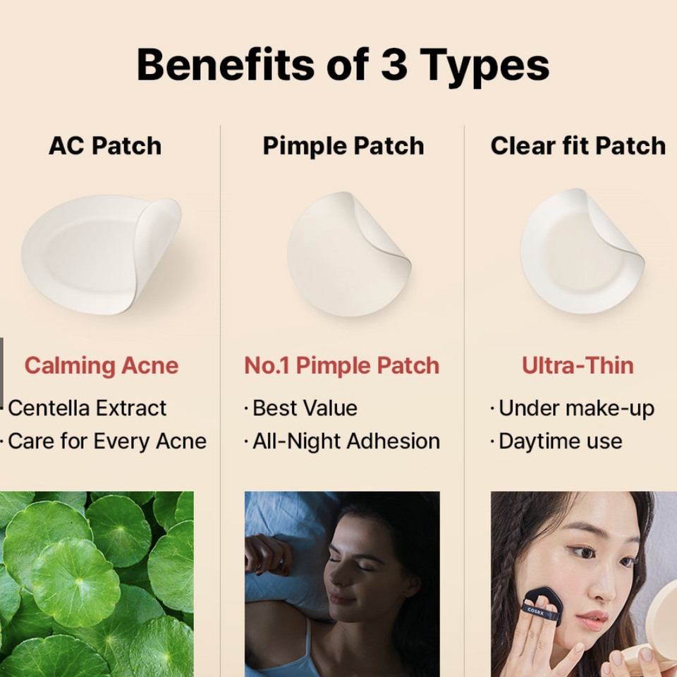 ว่านหางจระเข้, ชาเขียว, กรดไฮยาลูโรนิก, วิตามินซี, เนียซินาไมด์, วิตามิน B5, Cica, ทีทรีส่วนผสมหลัก