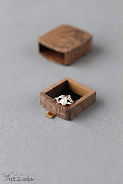 กล่องใส่แหวนทำจากผ้าฝ้ายทำด้วยมือทำจากไม้วอลนัทสำหรับงานแต่งงานที่ใส่แหวนทำจากไม้แท้สำหรับงานหมั้น