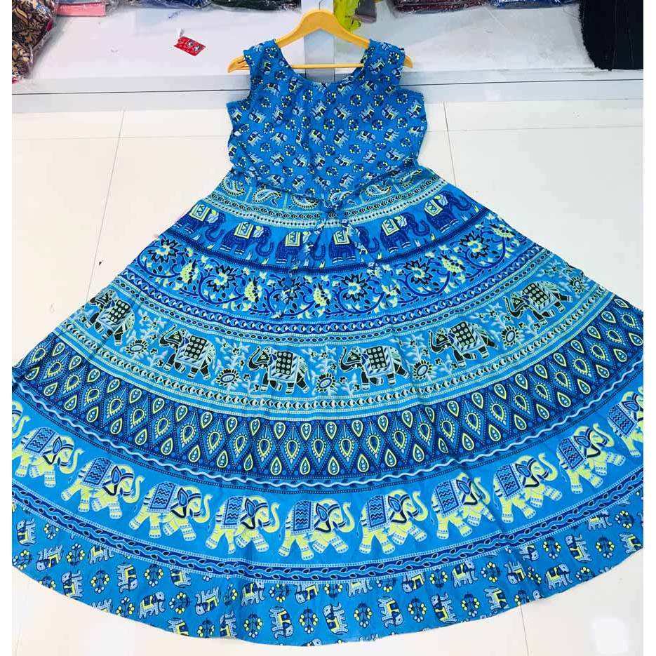 Jaipuri ชุดราตรีผ้าฝ้ายพิมพ์ลายสีฟ้า