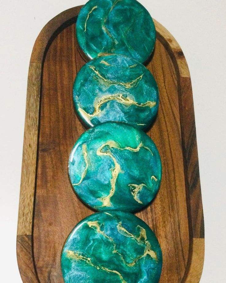 ถาดรองแก้วไม้อีพ็อกซี่เรซินสำหรับเครื่องดื่มชากาแฟถ้วยชาทรงกลม