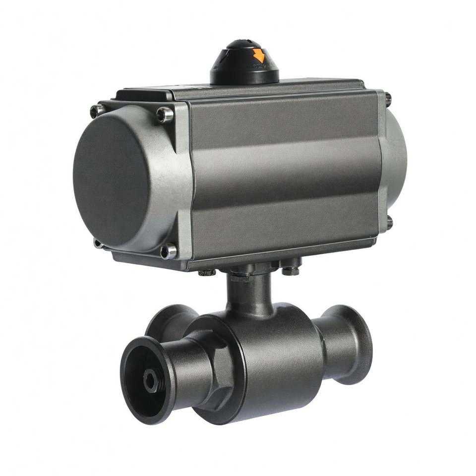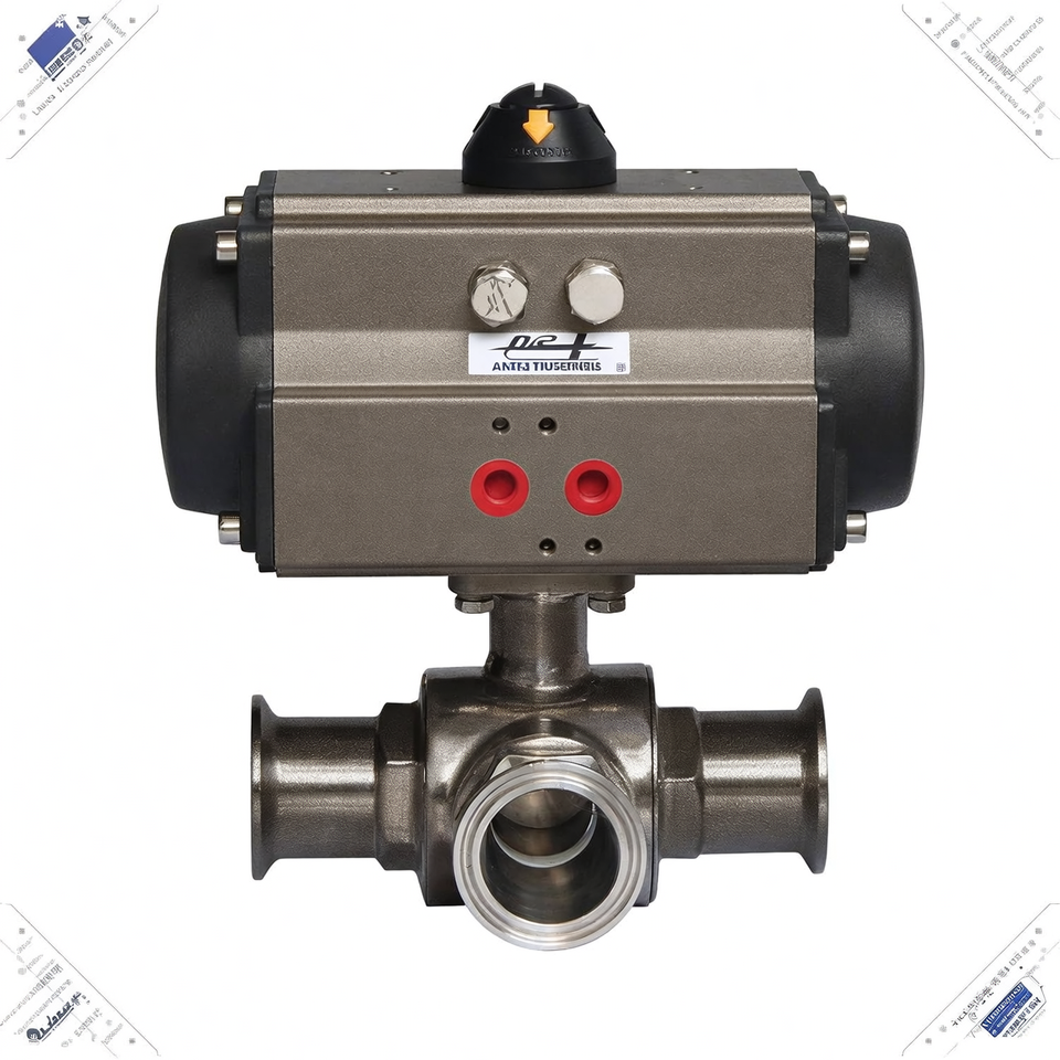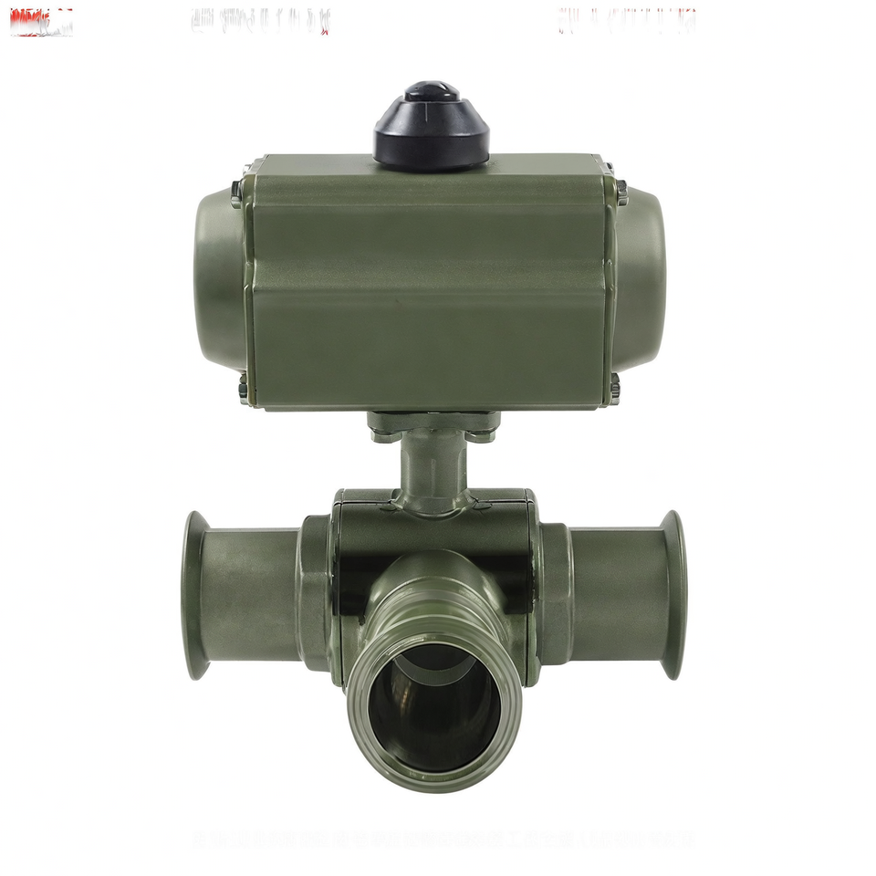 วาล์วบอลแบบ 3 ทาง COVNA ชนิดหน้าแปลน สำหรับงานสุขภัณฑ์ ทำจากทองเหลือง ทนกรด ใช้ลมขับเคลื่อน ได้มาตรฐาน OEM สำหรับอาหาร