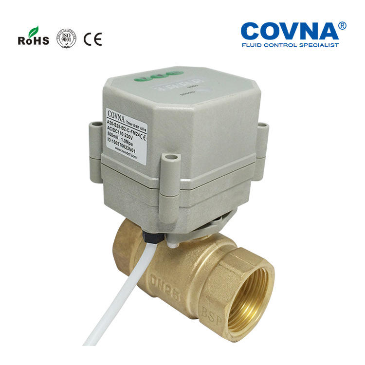 วาล์วบอลไฟฟ้า COVNA แบบกำหนดเอง ขนาดเล็ก ตัดไฟอัตโนมัติ รีเซ็ตอัตโนมัติ ควบคุมเวลา 4 นาที ทำจากทองเหลือง เกลียวไฟฟ้า