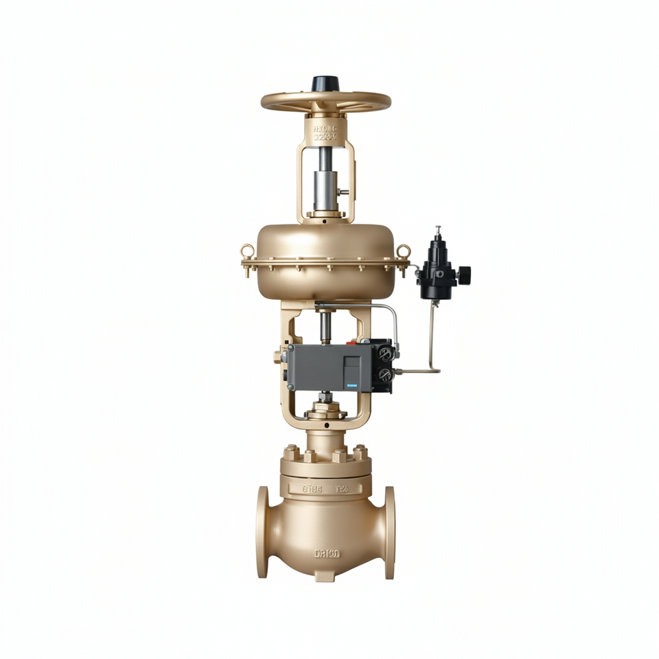 วาล์วควบคุมไอน้ำแบบลูกโลกหน้าแปลนลมสแตนเลส COVNA แบบที่นั่งเดียว WCB พร้อมตัวควบคุมตำแหน่ง