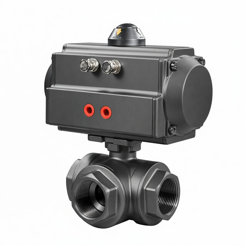 COVNA Urgent Order DN40 1.5 Inch Three Way L Port 1000 WOG High Pressure NPT Threaded SS 304 Pneumatic Actuated Ball Valve