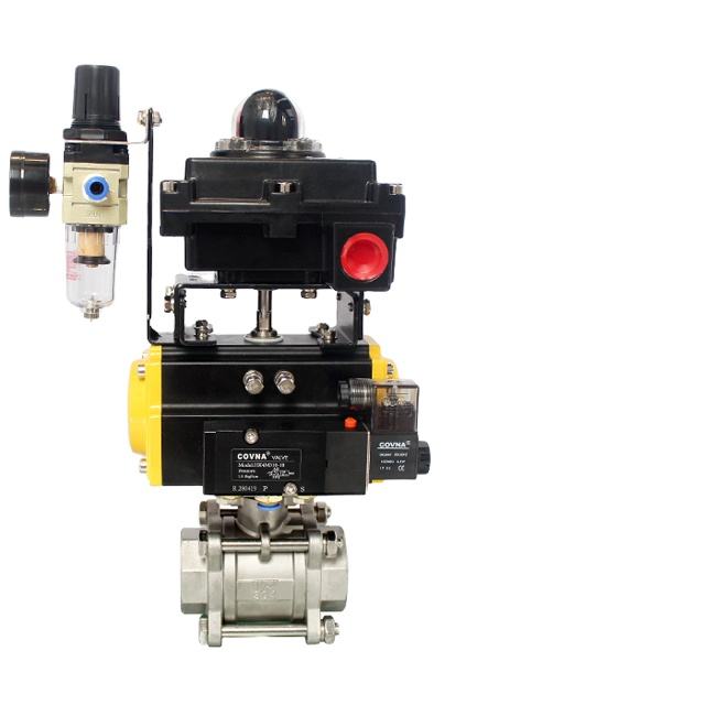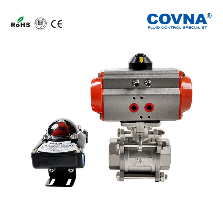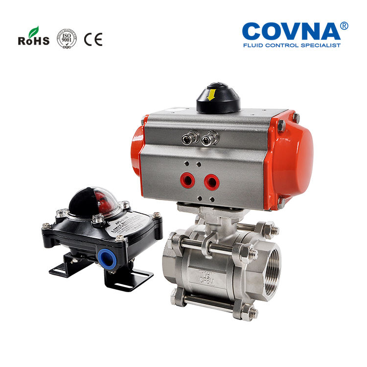วาล์วบอลแบบนิวเมติกสแตนเลส COVNA รุ่น PN10/16/64 สำหรับคำสั่งซื้อเร่งด่วน แบบสองทางและทางเดียว OEM ปรับแต่งได้ ทนอุณหภูมิสูง 1