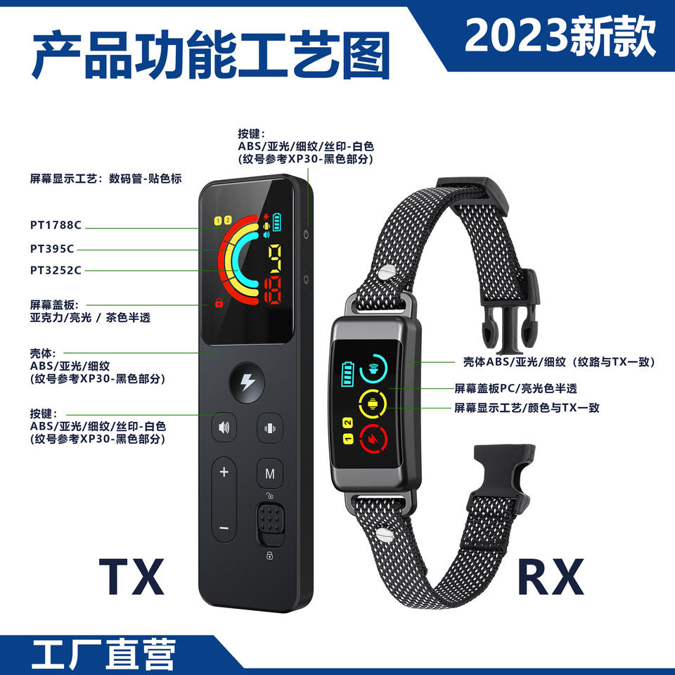 CP5 หน้าจอสี ปลอกคอฝึกสุนัขแบบชาร์จไฟได้ กันน้ำ อุปกรณ์ควบคุมการเห่า ปลอกคอช็อตไฟฟ้าสำหรับใช้งานทั่วไป