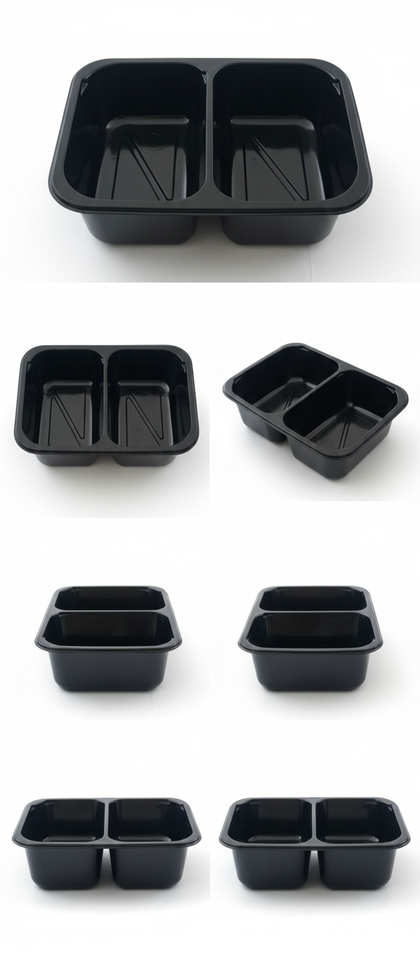 ถาด CPET, ถาดแบบสองชั้น, ถาดสำหรับใช้บนเครื่องบิน, ถาดสำหรับอาหารพร้อมรับประทาน, ถาดสำหรับอาหารพร้อมปรุง, จำหน่ายจำนวนมากสำหรับธุรกิจจัดเลี้ยงและใช้ในบ้าน