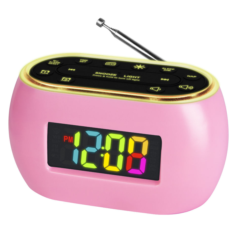 นาฬิกาปลุกวิทยุ FM อิเล็กทรอนิกส์แบบพกพาพร้อมไฟ RGB CR-740C จอแสดงผลดิจิตอลวัสดุพลาสติก