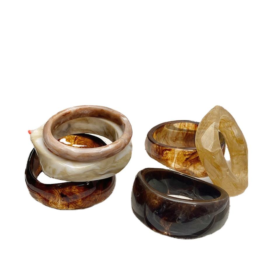 CRAFTS HUB ลดราคาพิเศษ 2025 กำไลข้อมือเรซิ่นอะคริลิคสีน้ำตาลทรงเรขาคณิต ดีไซน์เก๋ไก๋สำหรับงานปาร์ตี้ กำไลหนาทันสมัย