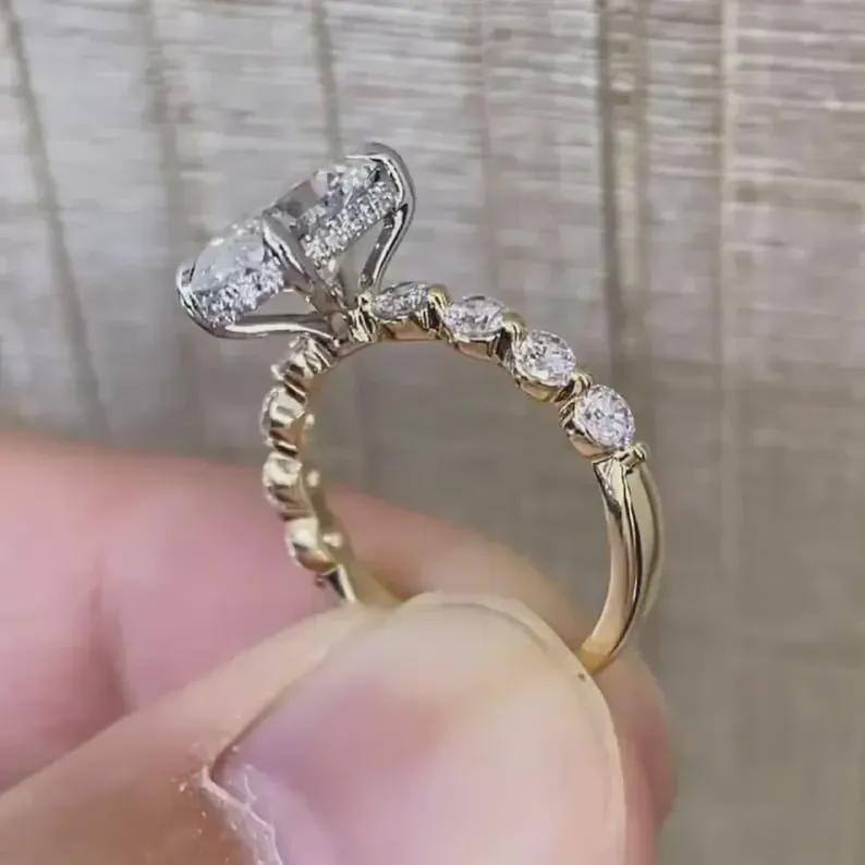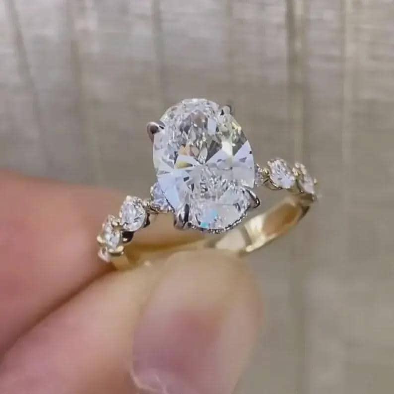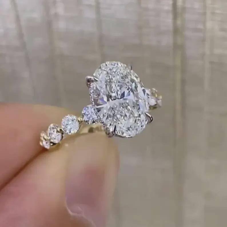 แหวนเพชรทรงวงรี 2.52 กะรัต ผลิตในห้องปฏิบัติการจาก CREATIVE CRAFT ประดับเพชรแบบคลัสเตอร์ พร้อมใบรับรอง IGI ทองคำแท้ 18K คุณภาพพรีเมียม ของขวัญสำหรับเธอ