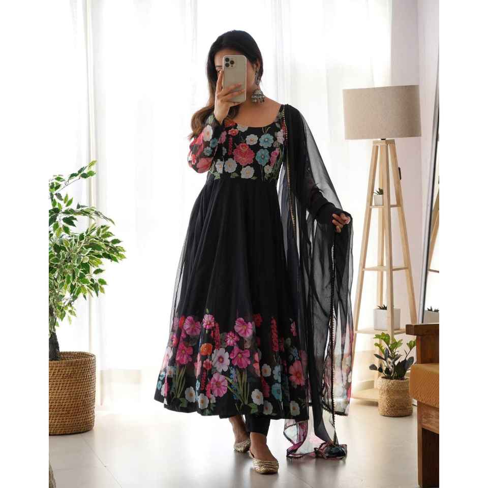 ชุดสูท anarkali ออร์แกนซ่าผ้าโปร่งบางแท้สีครีมมี DKB-25เย็บเต็ม