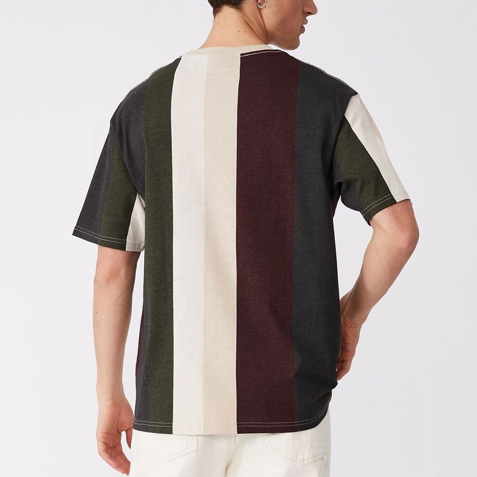 เสื้อยืดคอกลมแขนสั้นสำหรับผู้ชายเสื้อยืดคอกลมลายทางแนวตั้งเสื้อยืดแขนสั้นสำหรับฤดูร้อน